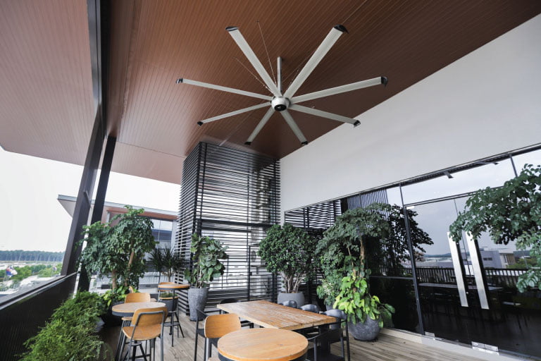 Enjoy the breeze of AireGard HVLS fans while relaxing and having a drink looking at the Petronas Twin Towers.
