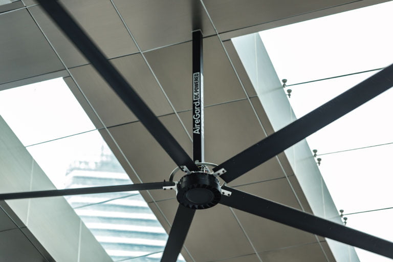 The aesthetics of the AireGard HVLS fan PS Series matches the theme design of AME Engineering greatly. The installation of one unit is enough to cover and provide airflow for the entire area.