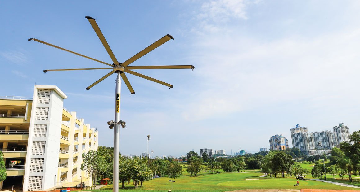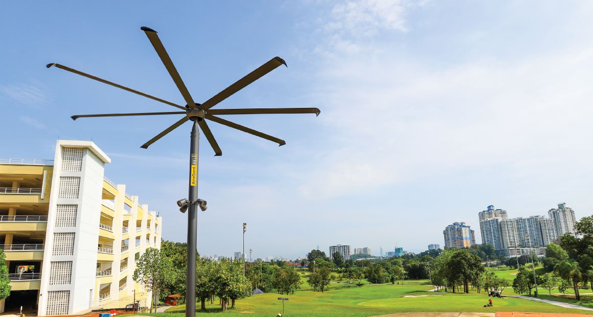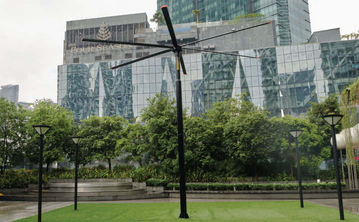 AireGard HVLS PSP Series is a favorite among establishments with a limitation of upper room space or areas that aren’t suitable for fans to be mounted. With a pole to keep it steady and only 2 moving parts, it operates quietly and can withstand the toughest conditions, rain or shine.