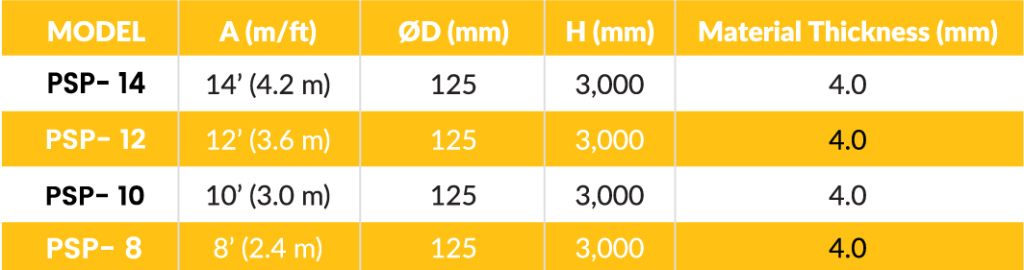 | Model | PSP - 8 | PSP -10 | PSP -12 | PSP -14 |